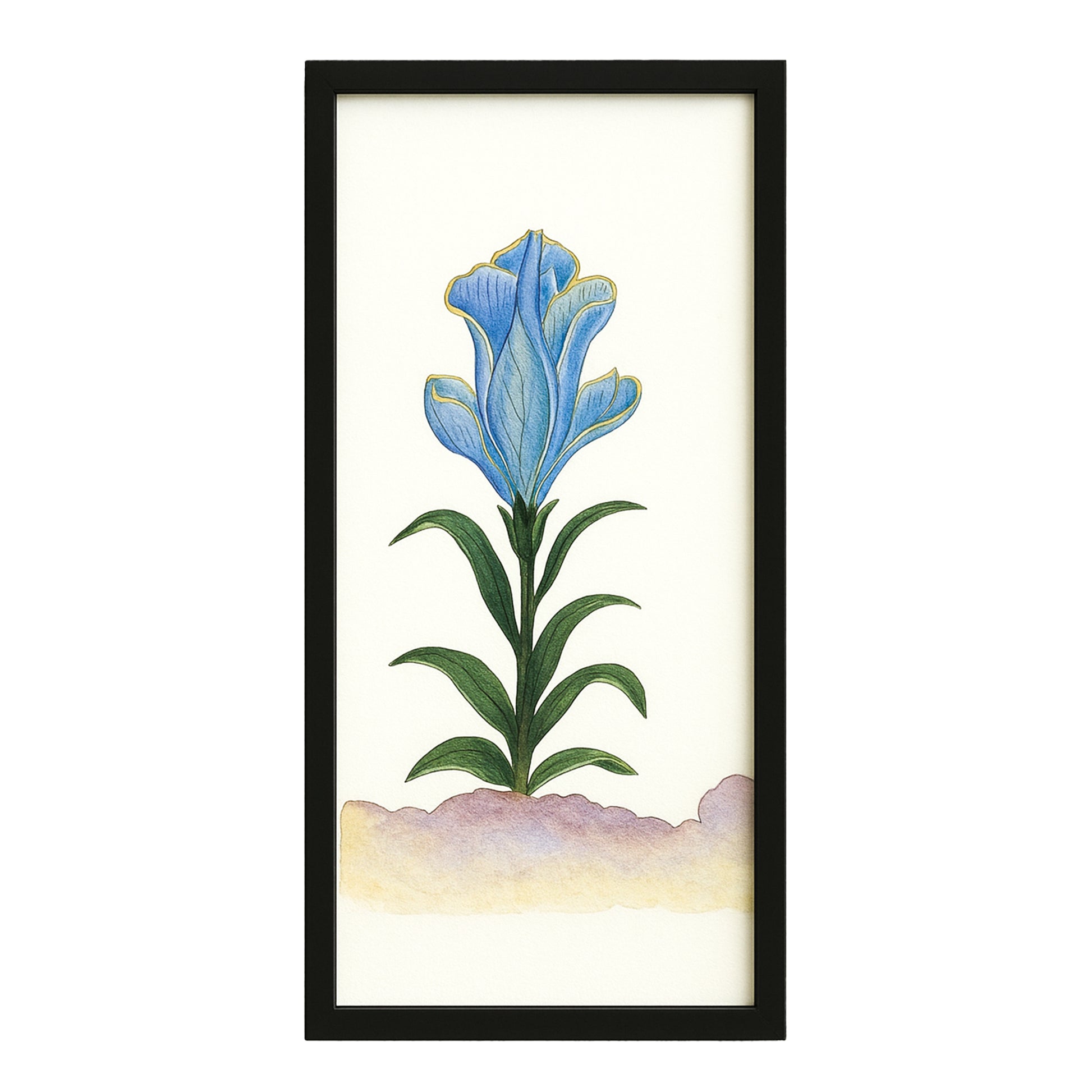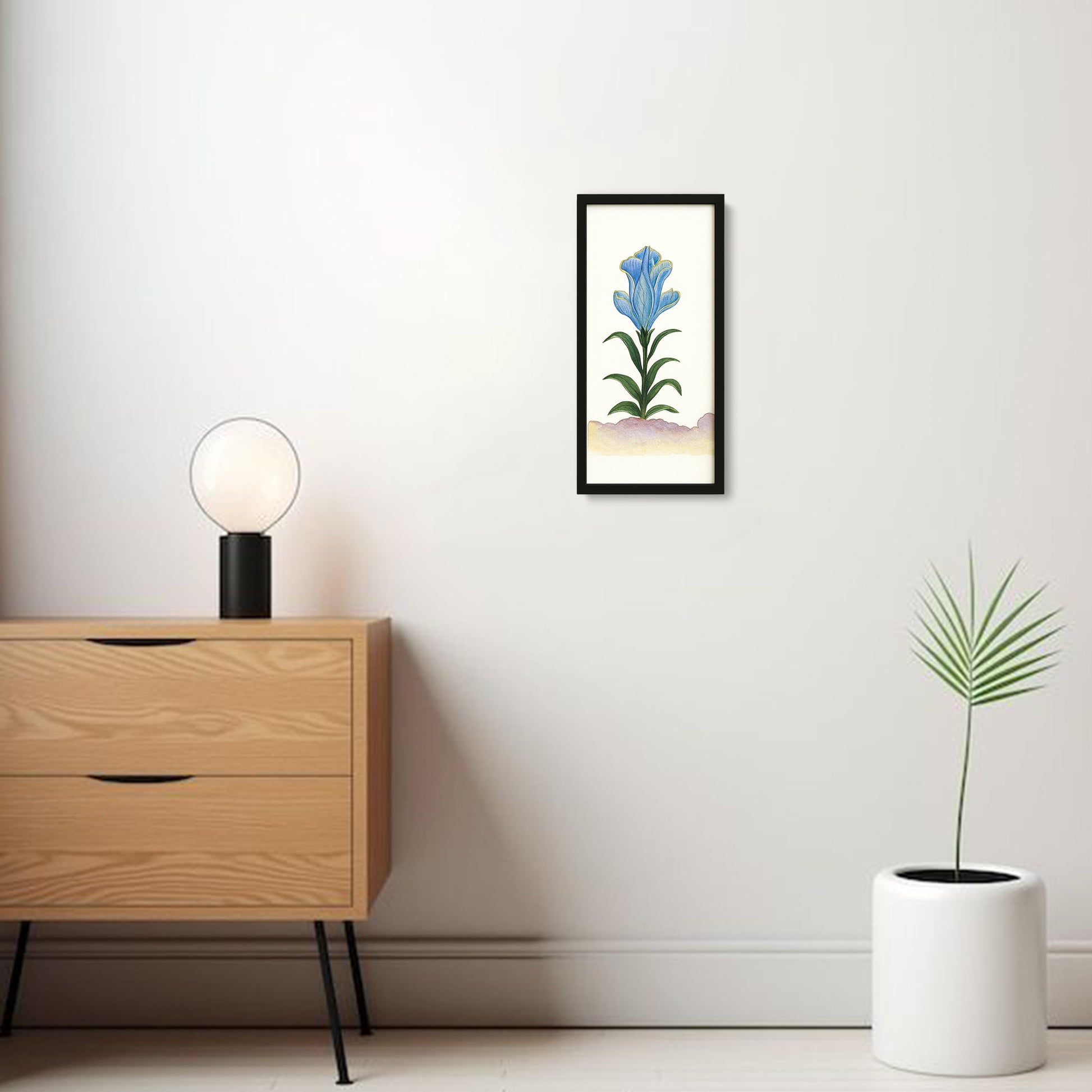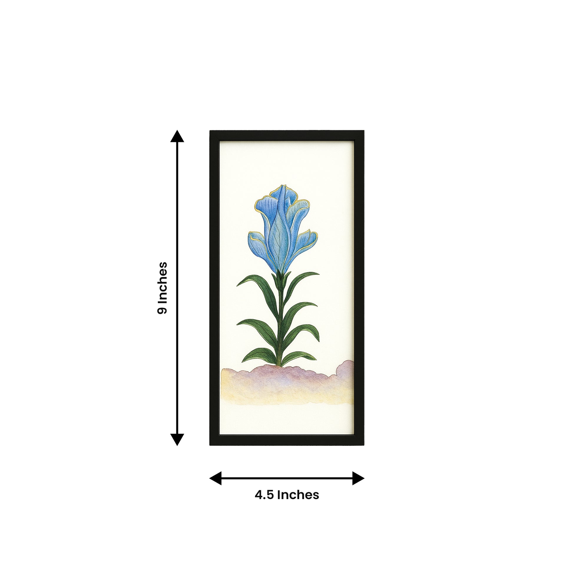 Each flower is carefully hand-painted using a fine brush called 'kalam' and opaque watercolors on wasli (handmade paper). The plain backgrounds in the composition of these paintings have been thoughtfully chosen and paired to showcase the beauty of the flora as well as the highly stylized visual language of miniature art.